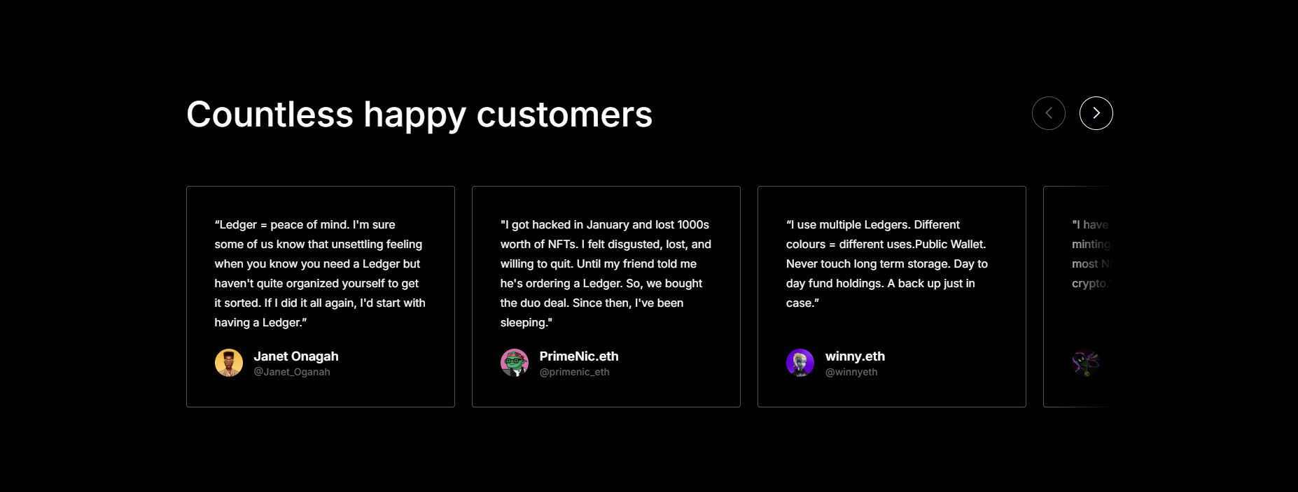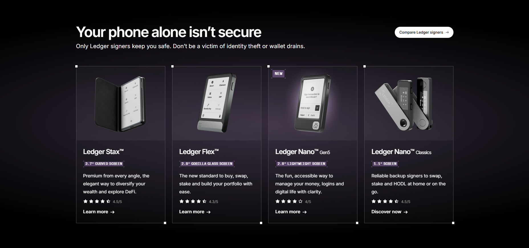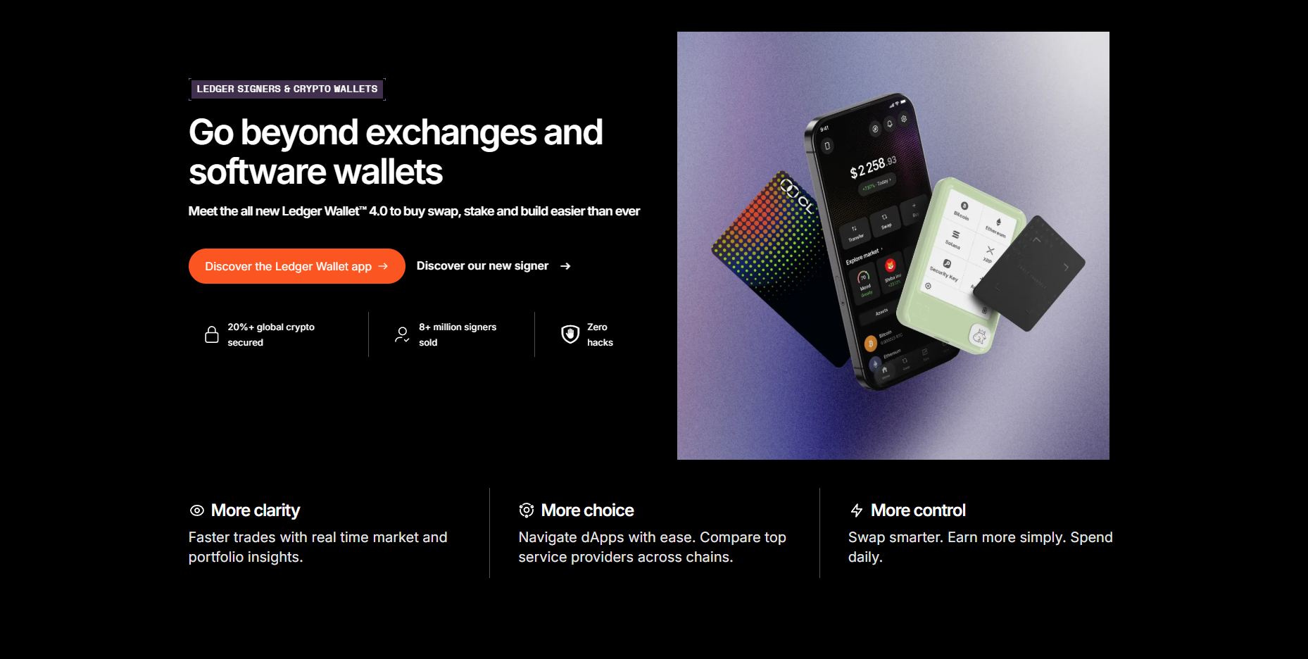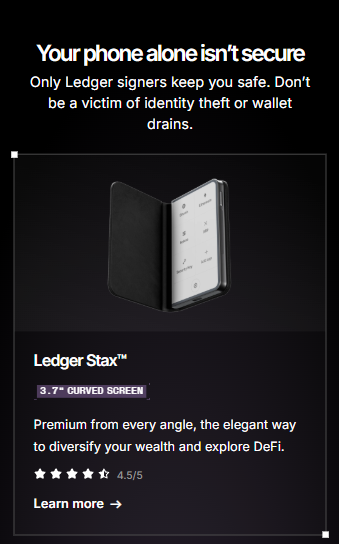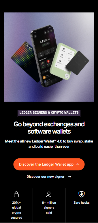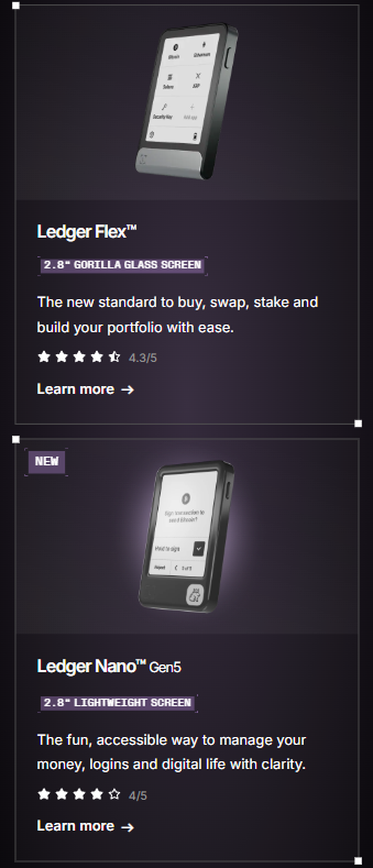 Purchase a Ledger hardware wallet. Store your private keys in a secure offline environment, ensuring peace of mind and complete control over your assets. All Ledger cryptocurrency wallets are equipped with the industry-leading Secure Element chip and Ledger's proprietary operating system, which protects your cryptocurrencies and NFTs against advanced cyberattacks.