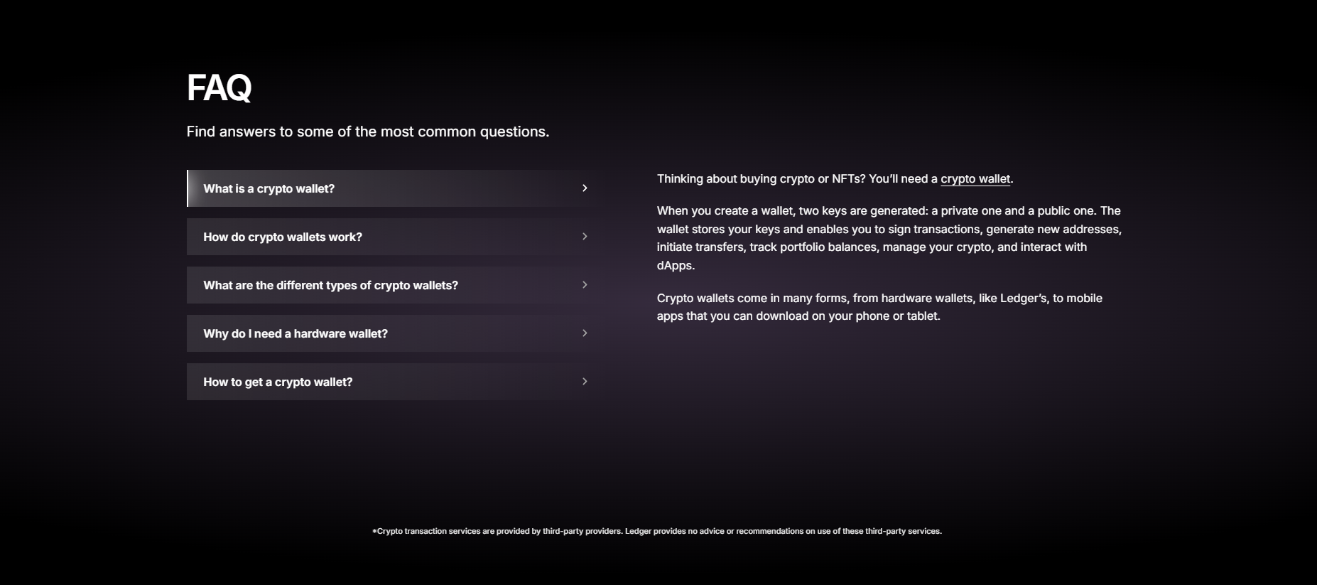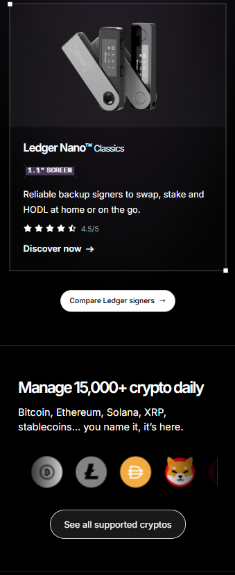 Add cryptocurrencies to your Ledger wallet. Ledger has integrated with leading third-party providers to allow you to buy, trade, stake, and manage cryptocurrencies through the Ledger Wallet app. Your cryptocurrencies will be securely transferred to your Ledger hardware wallet.
