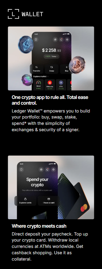 Connect your Ledger cryptocurrency wallet to the Ledger Wallet app to easily manage your cryptocurrencies, track your portfolio, and securely use a wide range of decentralized applications (dApps) and Web3 services. All in one place!